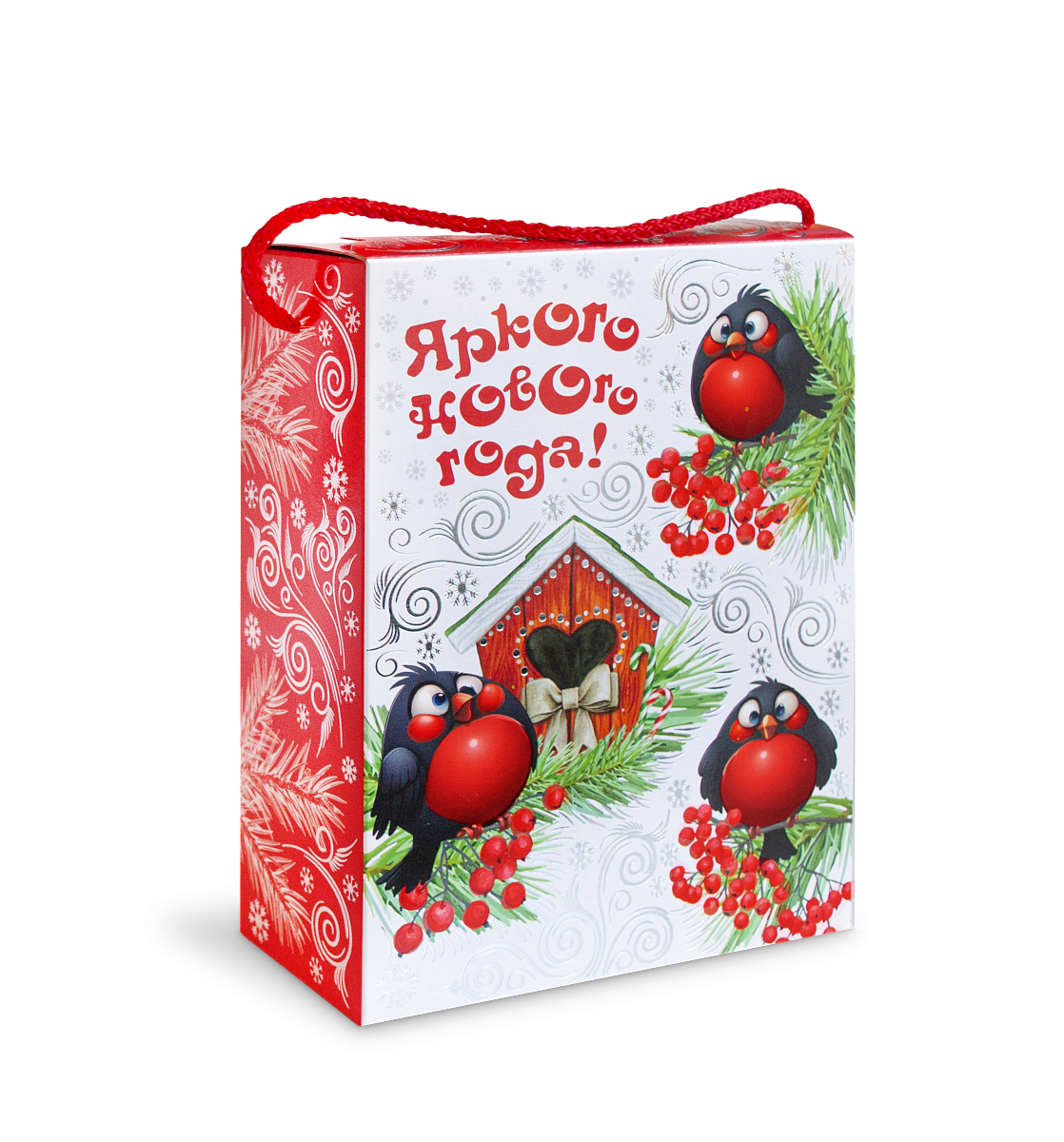 Детский новогодний подарок «Снегири красные» 600 г станет настоящим новогодним сюрпризом для любого ребенка в год Красной Огненной Лошади 2026. Новогодняя упаковка с забавными птичками наполнена самыми разнообразными сладостями и понравится не только детям, но и взрослым.