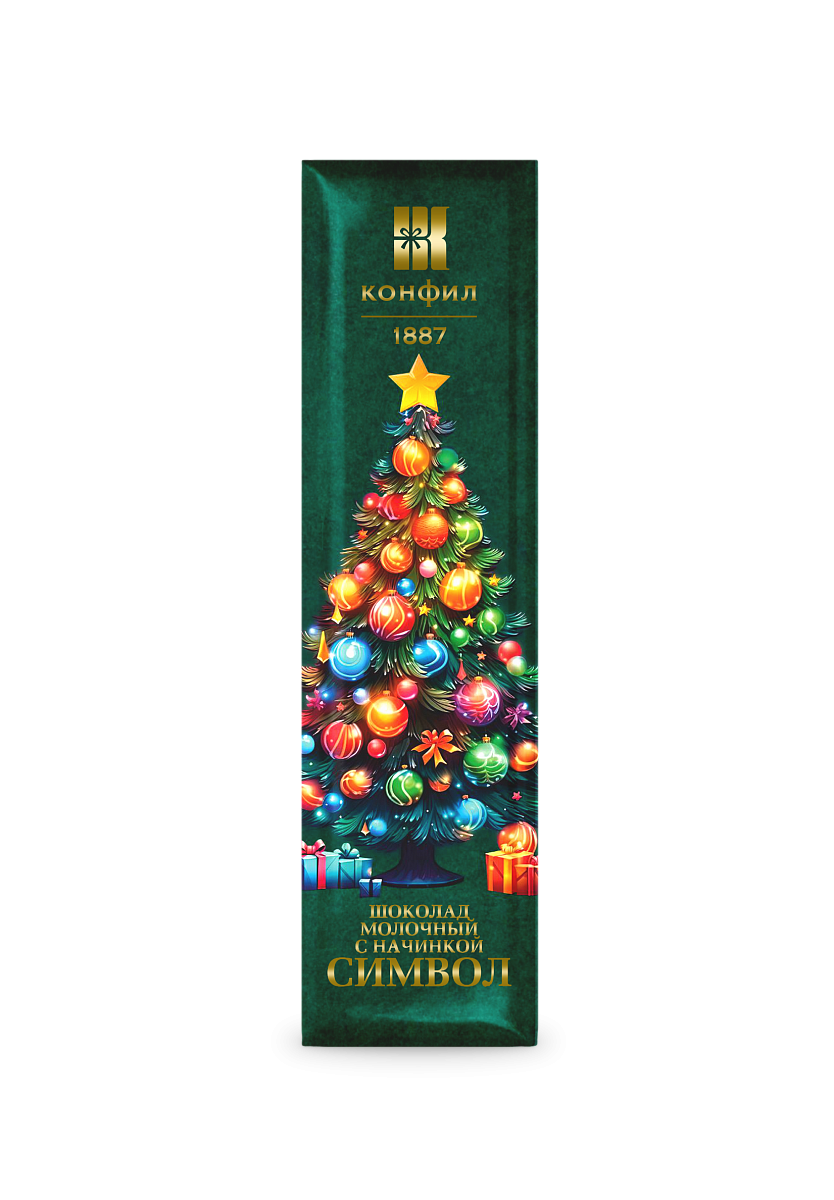 Шоколадный батончик из молочного шоколада с желейной начинкой с добавлением сгущенного молока и какао-продуктов в новогоднем дизайне.Новогодняя продукция в год Красной Огненной Лошади 2026.