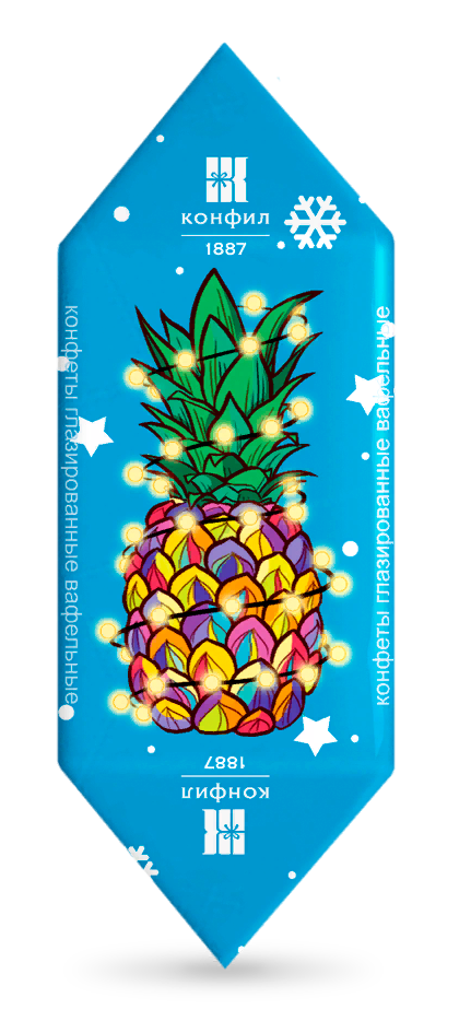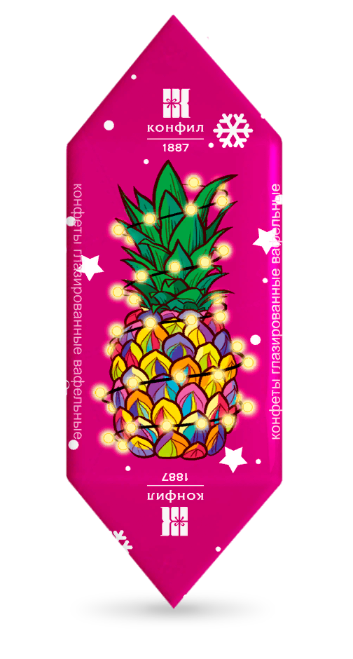 Постные вафельные конфеты со вкусом ананаса в новогоднем дизайне. Новогодняя продукция в год Красной Огненной Лошади 2026. Покупайте постные сладости без яиц и молока на любой вкус!