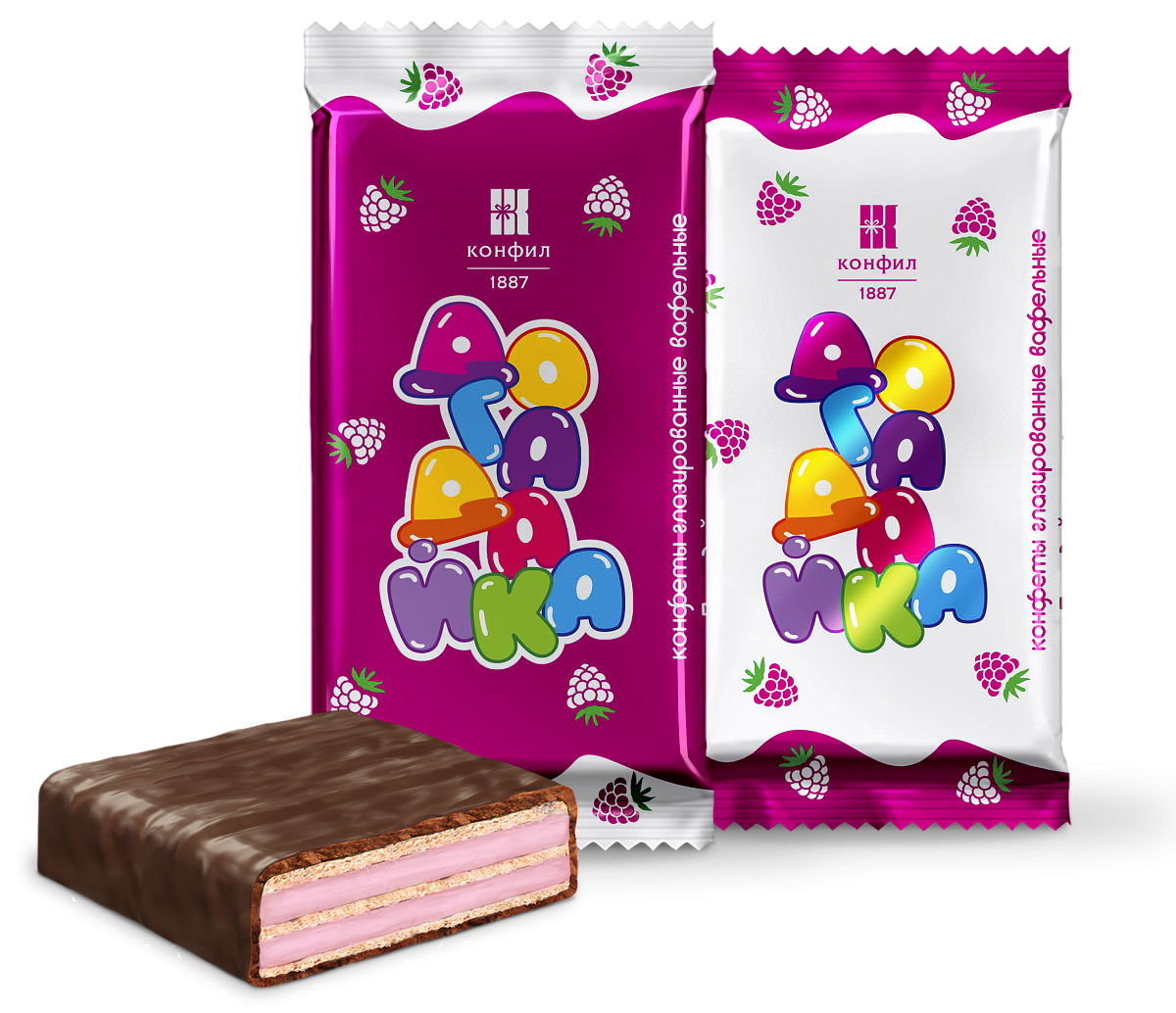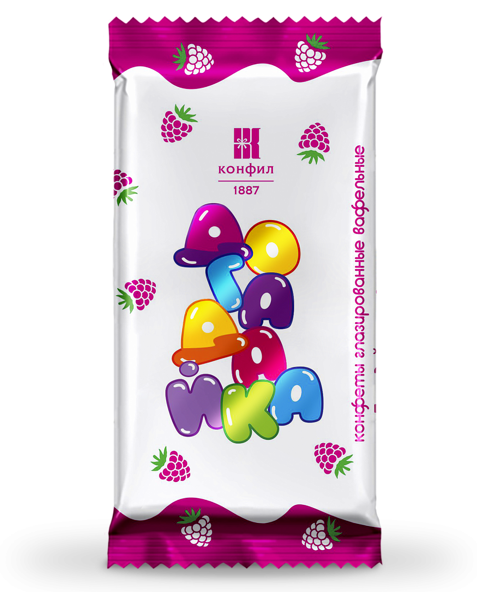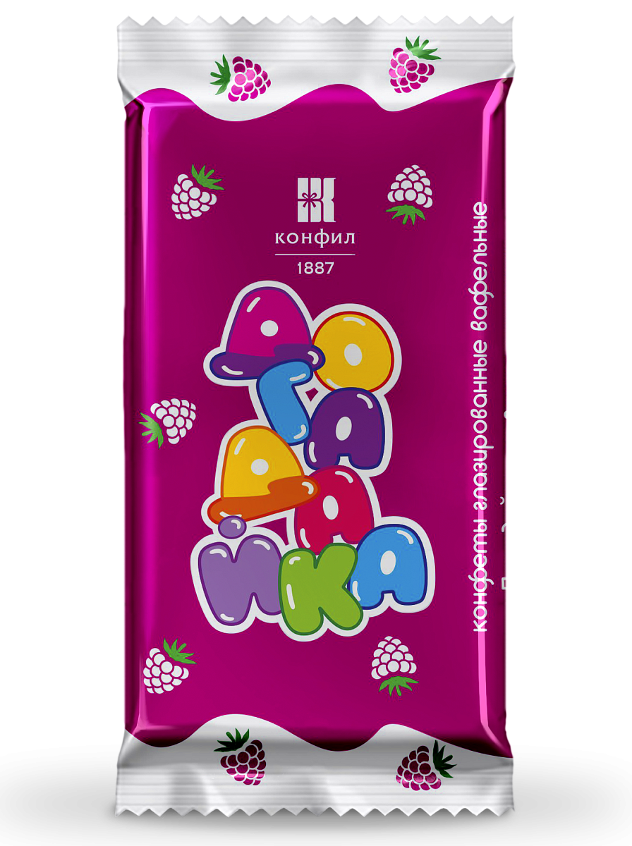 Вафельные конфеты с нежной молочной начинкой со вкусом малины, покрытые глазурью.